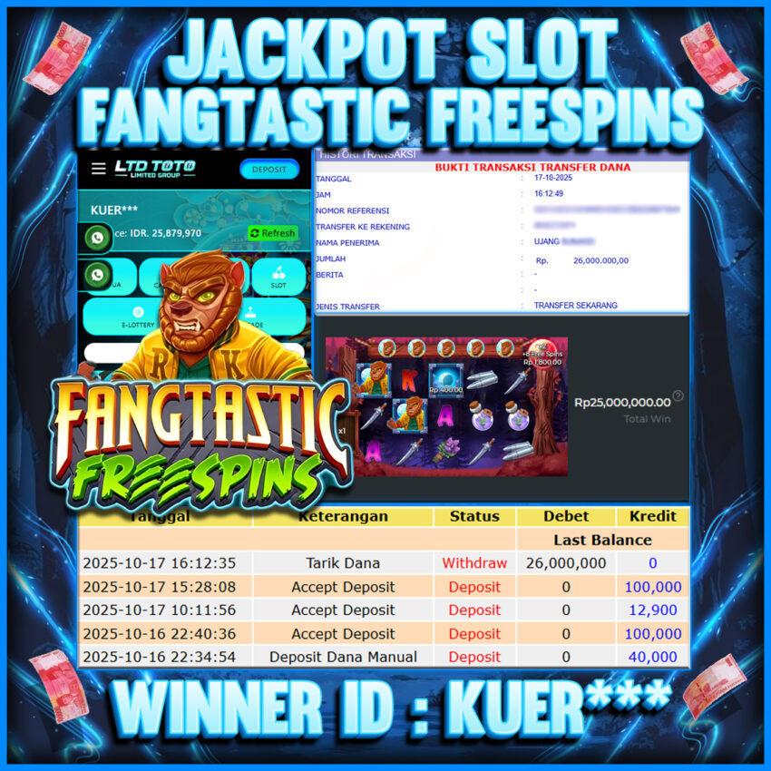 LTDTOTO JACKPOT FANGTASTIC FREESPINS RP 26.000.000 JUMAT 17 OKTOBER 2025
