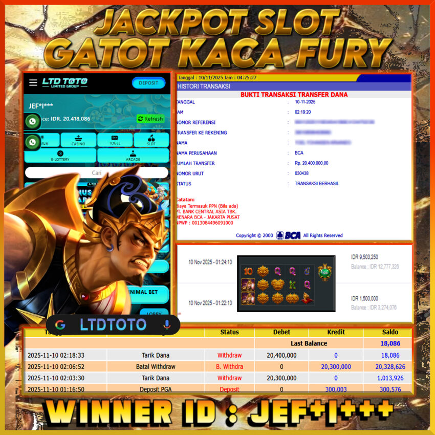LTDTOTO JACKPOT GATOT KACA FURY RP 20.400.000 SENIN 10 NOVEMBER 2025