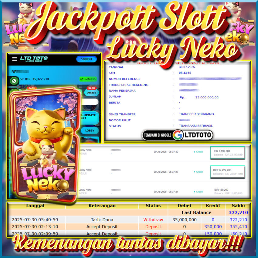 LTDTOTO JACKPOT LUCKY NEKO RP 35.000.000 RABU 30 JULY 2025