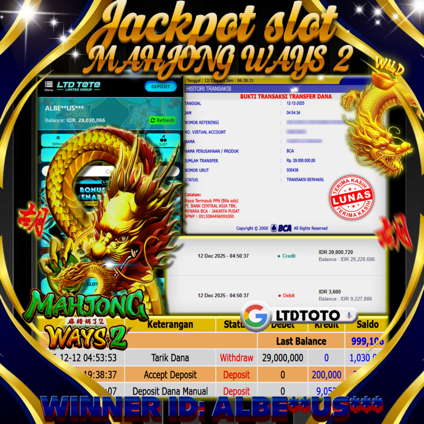 LTDTOTO JACKPOT MAHJONG WAYS II RP 29.000.000 JUM’AT 12 DESEMBER 2025