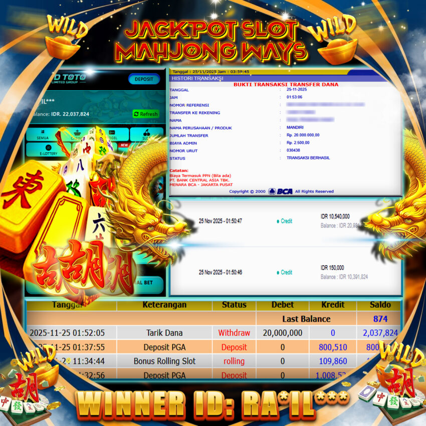 LTDTOTO JACKPOT MAHJONG WAYS RP 20.000.000 SELASA 25 NOVEMBER 2025