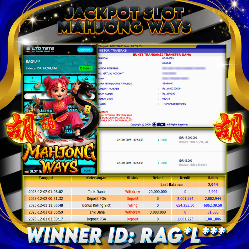 LTDTOTO JACKPOT MAHJONG WAYS RP 20.000.000 SELASA 02 DESEMBER 2025