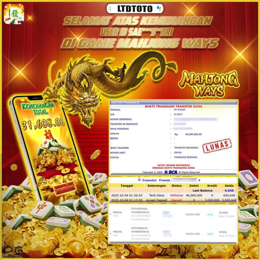 LTDTOTO MAHJONG WAYS RP 40.000.000 KAMIS 02 OKTOBER 2025