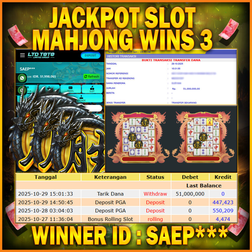 LTDTOTO JACKPOT MAHJONG WINS 3 RP 51.000.000 RABU 29 OKTOBER 2025