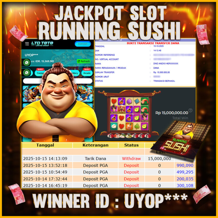 LTDTOTO JACKPOT RUNNING SUSHI RP 15.000.000 RABU 15 OKTOBER 2025