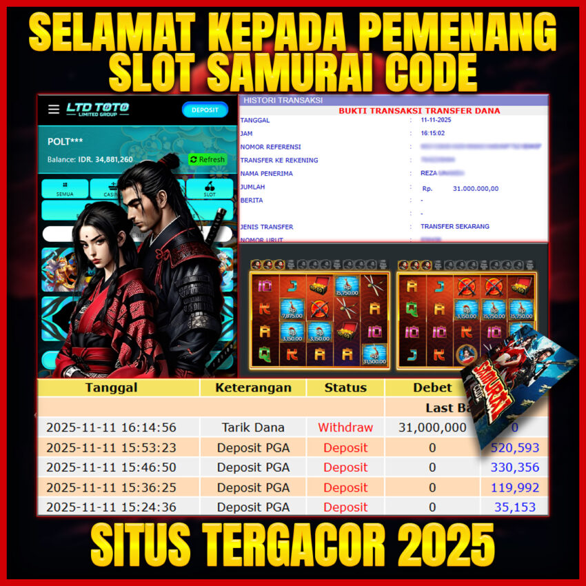 LTDTOTO JACKPOT SAMURAI CODE RP 31.000.000 SELASA 11 NOVEMBER 2025