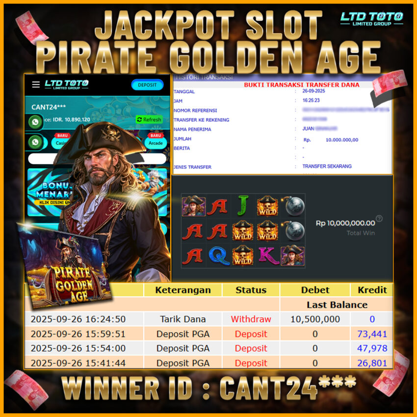 LTDTOTO JACKPOT SLOT PIRATE GOLDEN AGE RP 10.500.000 JUMAT 26 SEPTEMBER 2025