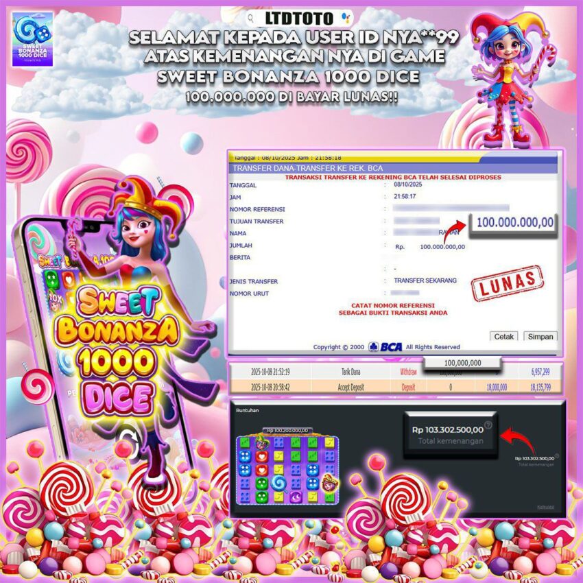 LTDTOTO JACKPOT SWEET BONANZA 1000 DICE POOLS RP 100.000.000 KAMIS 09 OKTOBER 2025