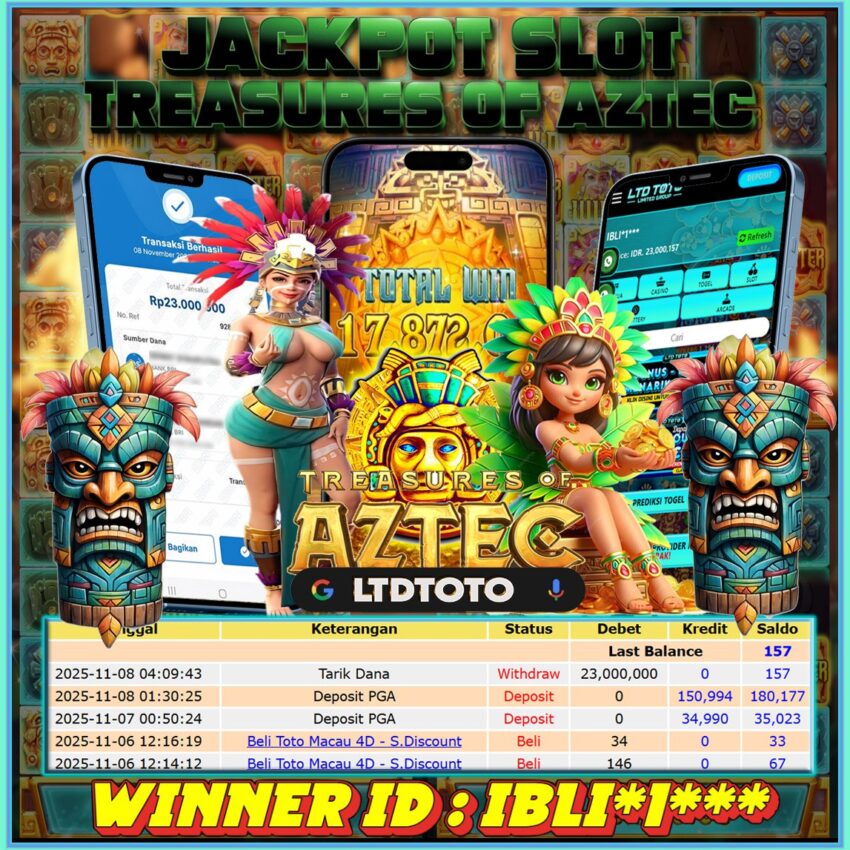 LTDTOTO JACKPOT TREASURES OF AZTEC RP 23.000.000 SABTU 08 NOVEMBER 2025