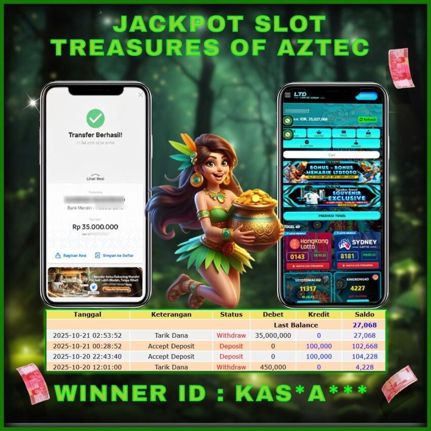 LTDTOTO JACKPOT TREASURES OF AZTEC RP 35.000.000 SENIN 21 OKTOBER 2025